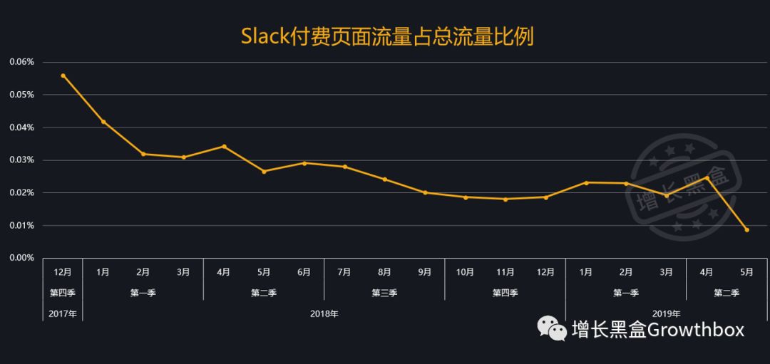 整体而言,Slack对于免费用户的转化效果正在呈现下降的趋势。
