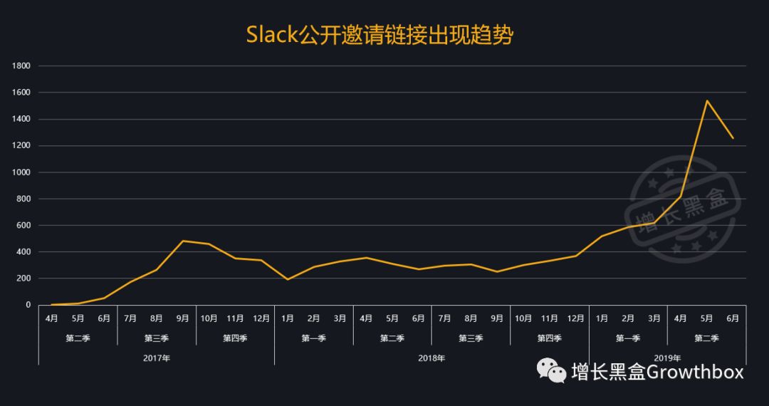 如何追踪用户的这种使用行为呢?用户点击其他网站上的邀请链接时,会跳转到Slack网站进行注册加入,这种行为被记录为引荐(Referrals)。所以,这种社区的新用途可以通过Slack的引荐流量(Referrals)数据进行一定的观察。
