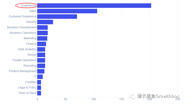 通过Slack在产品研发上的支出和人员招聘的结构,我们可以在一定程度上观察到它的成长驱动力所在。