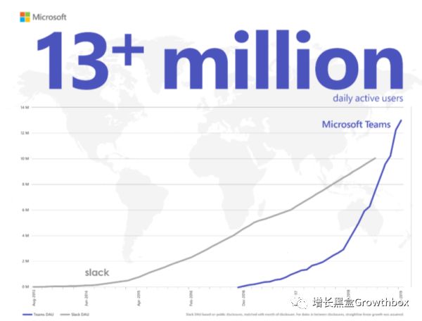 就在我们探究Slack的这段时间内,微软上周刚刚公布了Teams的日活数据,DAU竟然已经达到了1300万。回顾Slack今年1月公布的1000万DAU数据,如果这项数据在半年间并没有特别明显提升的话,Teams日活很可能已经超过了Slack。