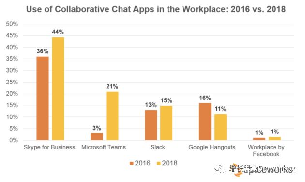 在一份Spiceworks对901家公司的问卷调查中发现,2018年,有21%的受访者在用微软的Teams,而只有15%的公司在使用Slack。对比2016年的使用情况来看,Teams在这两年间的渗透势头迅猛,已经成了不容忽视的力量。