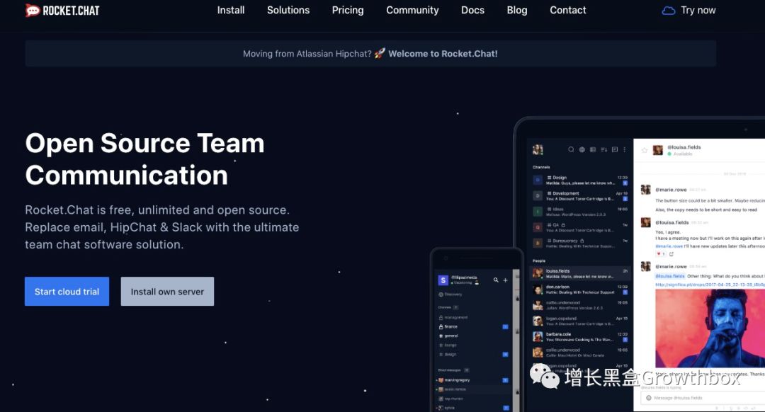 除了来自巨头微软的压力之外,其他开源的企业协同工具也在成为Slack的替代品。使用Slack这样的工具毕竟是将数据交给别人保管,而私有数据泄露会成为企业的担忧。加之高昂的订阅费用,企业产生对开源协同工具的需求自然而然就产生了。开源能帮企业节省一定成本,而私有化部署保证了数据的可控。比如最近十分火爆的Rocket Chat,许多热爱DIY的程序员都将其作为了首选。