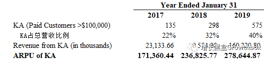 如果观察年付费超过10万美金的大客户ARPU值,这一指标在3年间上涨到1.6倍左右,增长趋势明显。