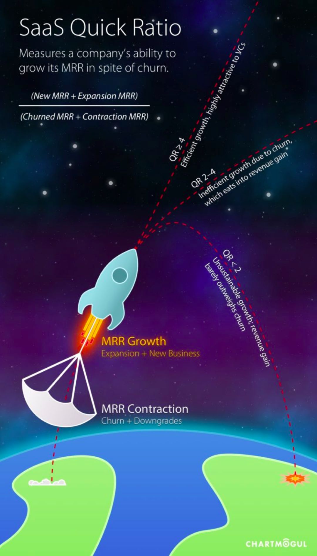 Quick 比率可以理解为SaaS公司脱离地球引力的逃逸速度。SaaS的商业模式是一边获取新增合同,一边通过服务创造价值,避免客户流失的过程。一般认为,Quick比率必须超过2,销售收入才能不被老客户的流失拖回地面。
