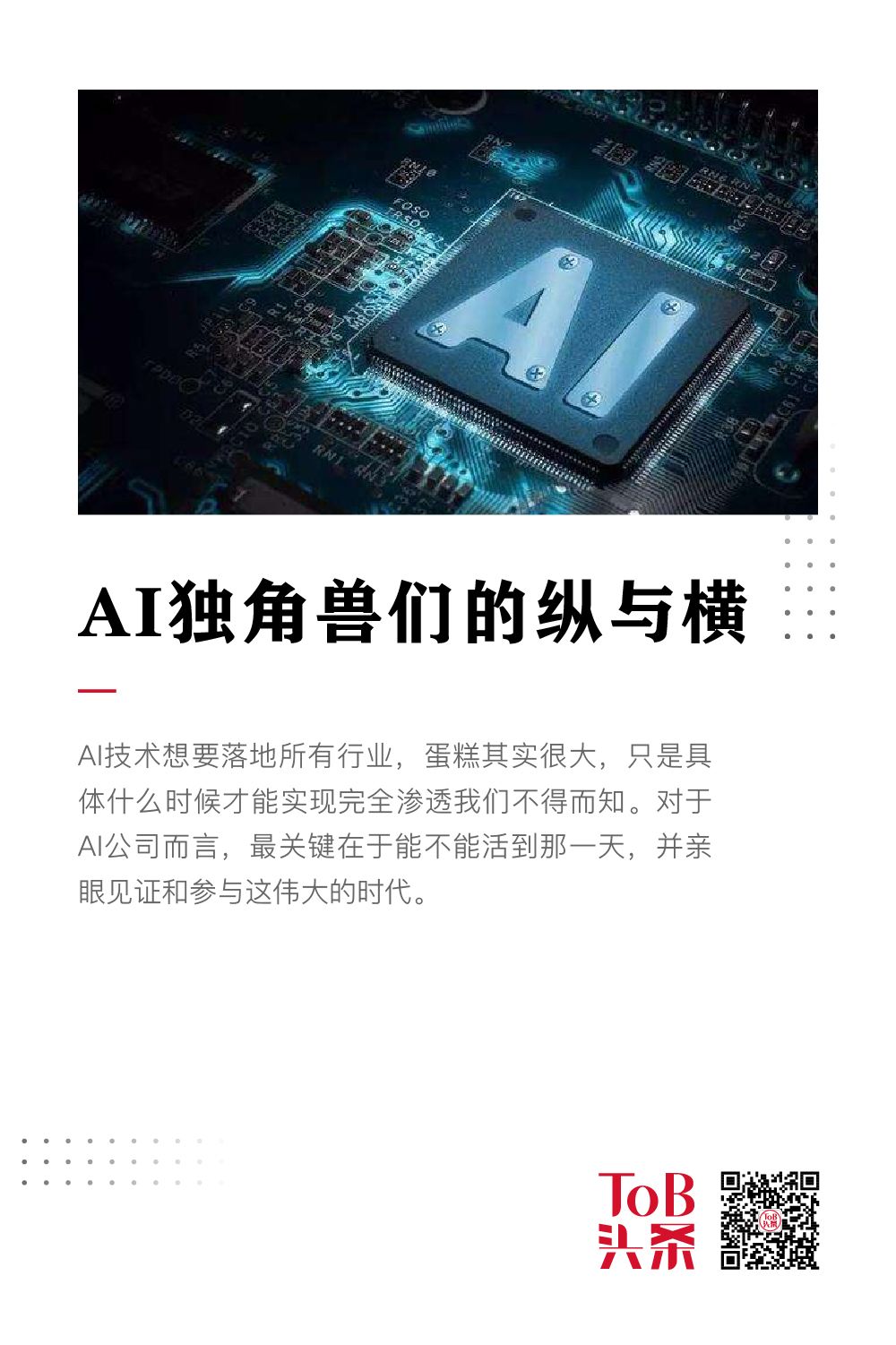 总的来说,AI技术想要落地的所有行业,蛋糕其实很大,具体什么时候才能实现完全渗透我们不得而知。对于这些AI公司来讲,最关键在于能不能活到那一天,并亲眼见证和参与这伟大的时代。