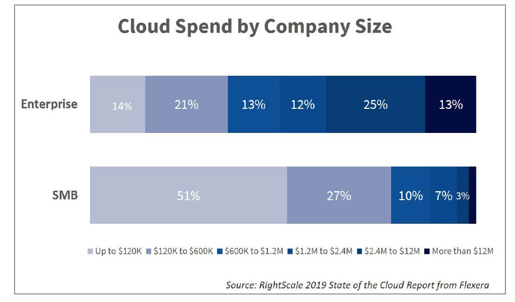 这个数据来自 RightScale 云行业研究团队的年度报告《云计算趋势:2019 年云计算状况调查》。报告指出,过去一年,全球云计算发展迅速,公有云、私有云、混合云遍地开花。但随着上云企业数量的增长和程度的深化,企业在云计算上的投入也与日俱增: