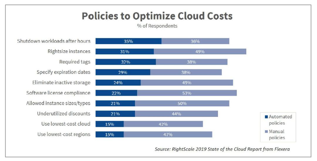 另一方面,尽管越来越多企业已经把云成本管理作为重要工作,但只有少数公司开始真正建立针对云计算的内部 IT 团队,实施自动化策略来优化云成本,例如对实例进行权限调整。