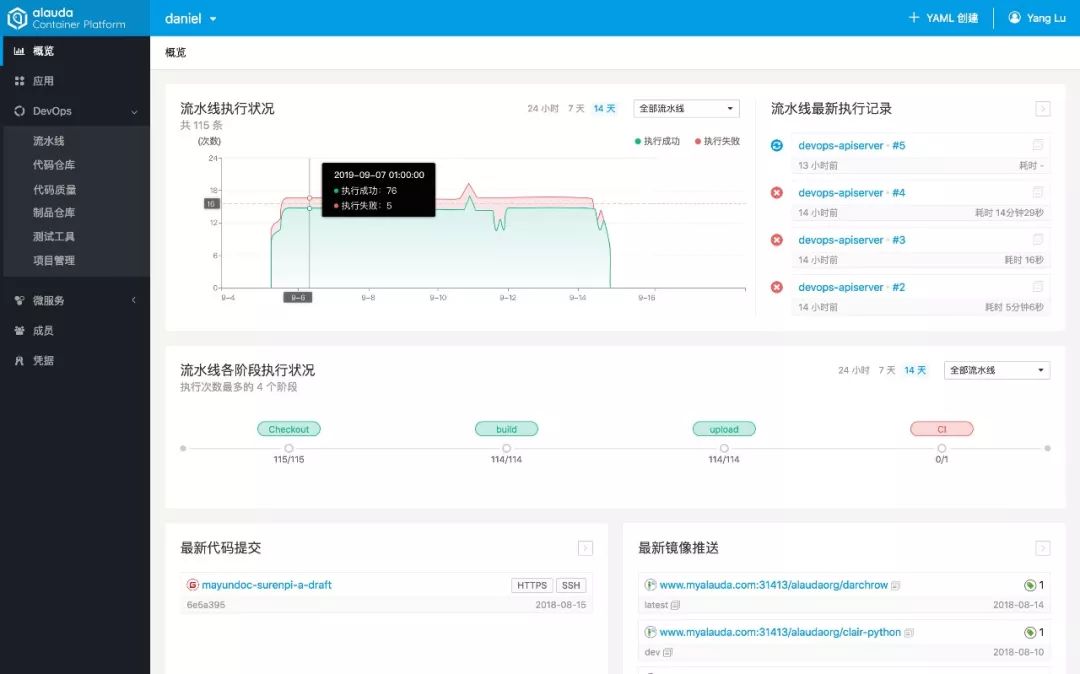 DevOps理念、方法论和实践已经走到了Early Majority早期大众阶段,是已被实践证实的高效开发运维方法。做容器的厂商都经历过用容器搞CI/CD,灵雀云也不例外,CI/CD是容易发挥容器优势的显而易见的使用场景。在去年,我们做了重大的产品升级,将原来的CI/CD功能模块扩展为完整的DevOps产品—Alauda DevOps平台,覆盖应用全生命周期。