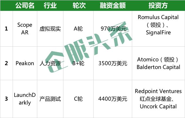 本周共收录国外企服领域3起融资,主要集中在3个领域,分别为虚拟现实、人力资源、产品测试领域。