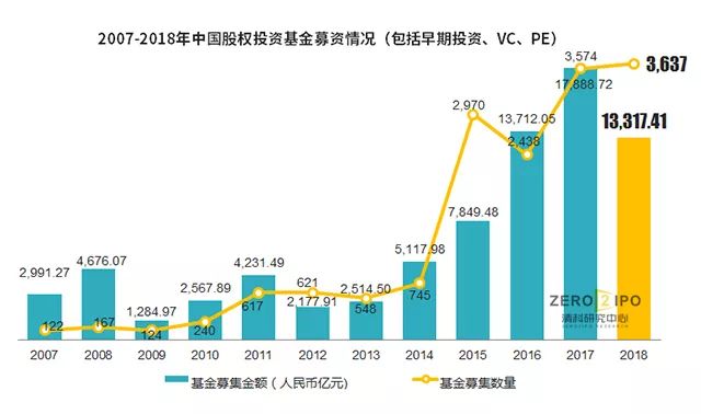 2018年,以《资管新规》为代表的一系列金融监管措施出台,直接收紧了中国股权投资市场的资金来源。中美贸易摩擦和民营企业债务危机影响到宏观经济预期,加剧了金融市场流动资金紧缺的困境,股权投资市场中人民币基金募资难度骤然上升。