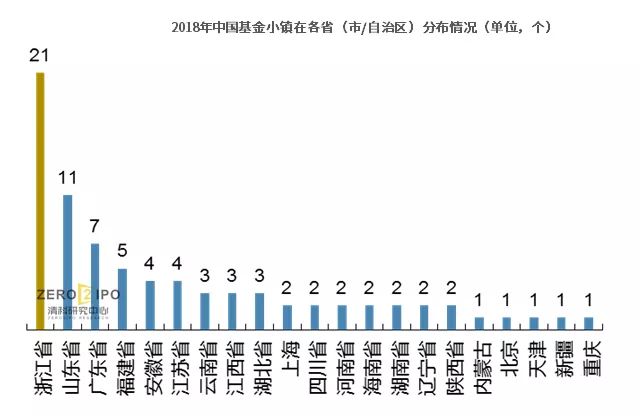目前全国已公布的基金小镇合计80个,已覆盖了全国21个省/自治区,整体建设进度良好。其中尤以浙江省遥遥领先,聚集了全国1/4的基金小镇。山东省、珠三角地区基金小镇数量紧随其后;中西部如安徽省、四川省等地区基金集聚发展速度也有显著提升。