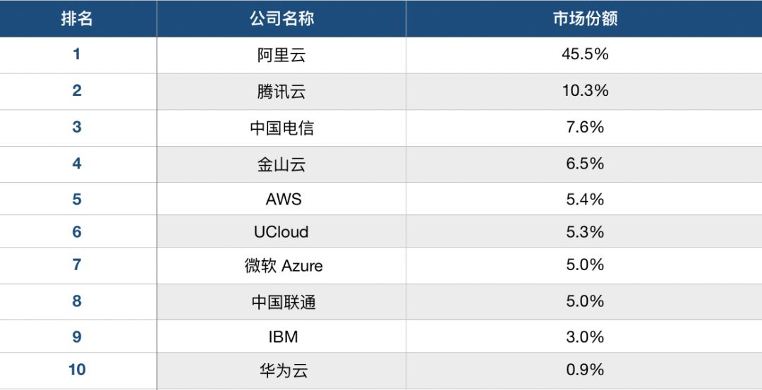 去年,知名咨询机构 IDC 发布了新一期《中国公有云服务市场跟踪报告》,披露了上半年中国公有云 IaaS 领先厂商的市场份额。
