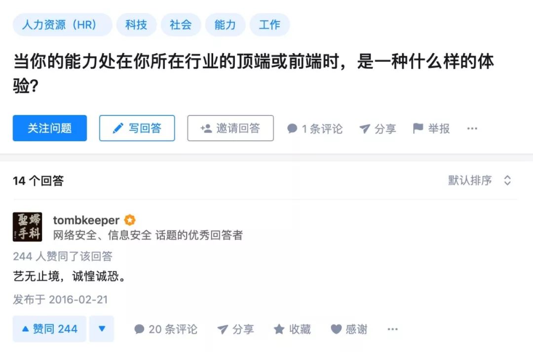 在知乎上有这样一个问题:当你的能力处在你所在行业的顶端或前端时,是一种什么样的体验?