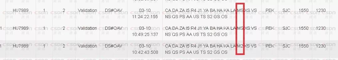 此时根据日志,10:49分,航空公司M舱剩余位置,显示状态为S(根据航空公司记录规则,S为没有可申请座位)。因为航空公司已经无可开放座位,故系统显示无票。”
