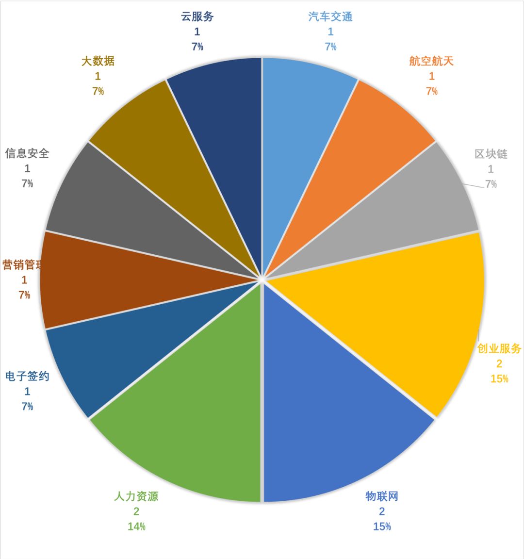 本周国内企服领域共发生14起融资,主要发生在11个领域。本周各领域融资数量分布较为平均,除人力资源、创业服务、物联网领域各有2笔融资,其余领域均只有1笔融资。