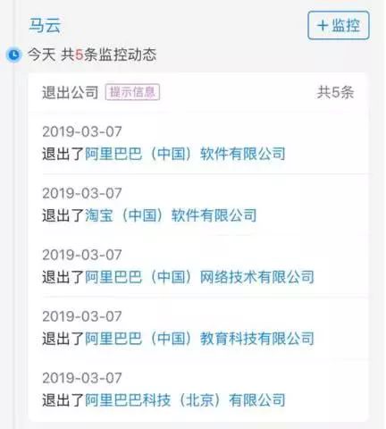 马云退出阿里旗下5家公司