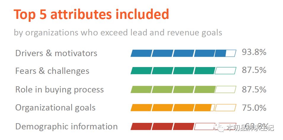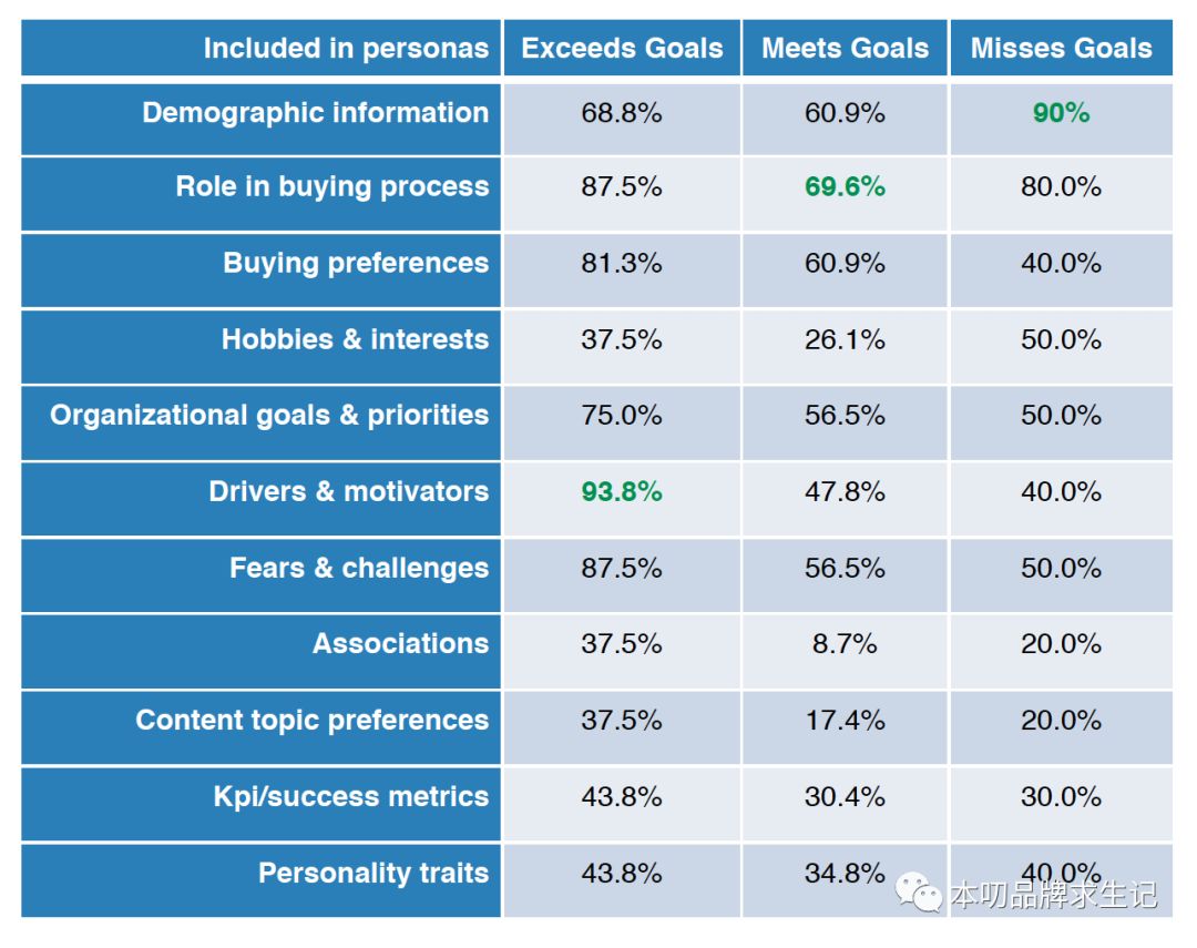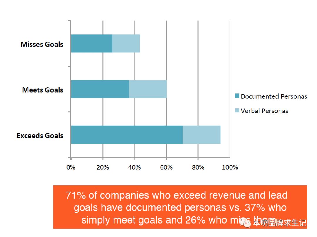 报告显示:超过其业务目标的公司中有71%有文件格式的用户画像,而刚好达到或未达到业务目标的公司里只有37%有文件格式的用户画像,其他都是口头形式的。
