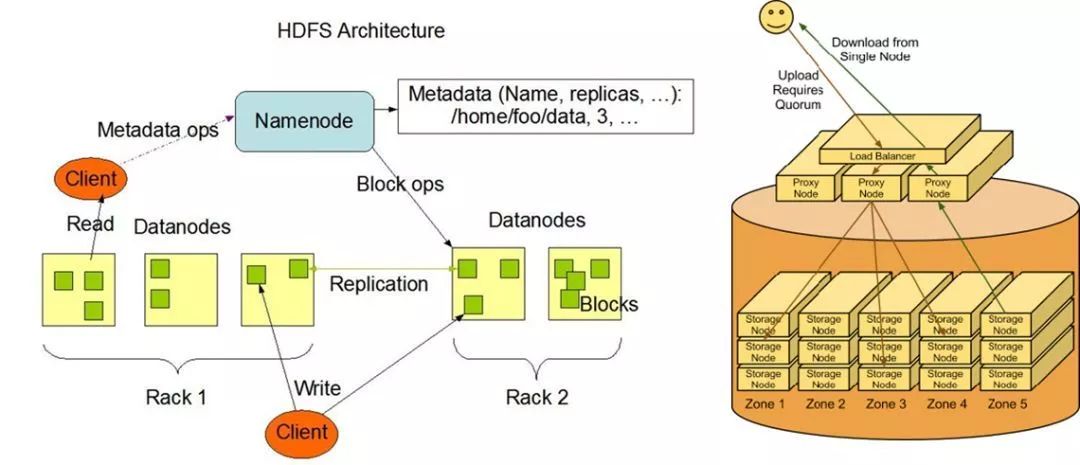 对于数据的存储:一台机器的文件系统肯定是放不下的,所以需要一个很大的分布式文件系统来做这件事情,把多台机器的硬盘打成一块大的文件系统。