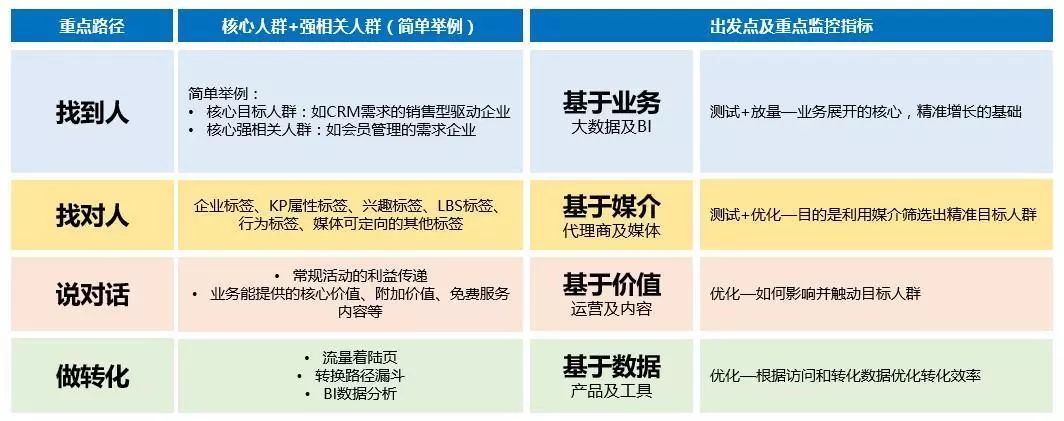 因为这一篇主要是探讨B2B企业如何向B2C企业学媒介投放,找到人和找对人方面,有很多和B2C企业的共同点。4段论的最后一步的做转化,就是数据方面。