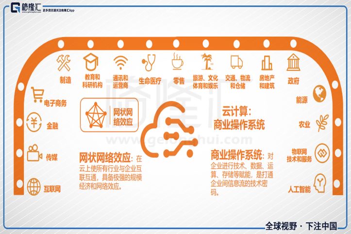 To B:云平台提供强劲算力生态圈由“端”扩展到“云”,成为商业基础设施: