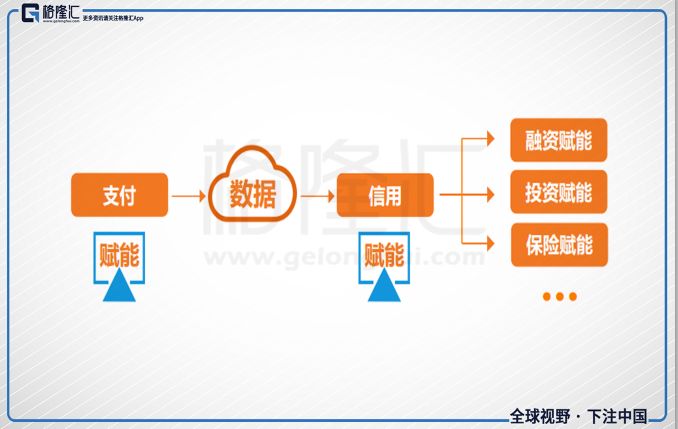 服务于企业资金流的金融赋能:主要为企业资金往来提供数字化服务,包括支付、融资、资产管理、保险等全链条金融活动,代表巨头有蚂蚁金服、平安集团;