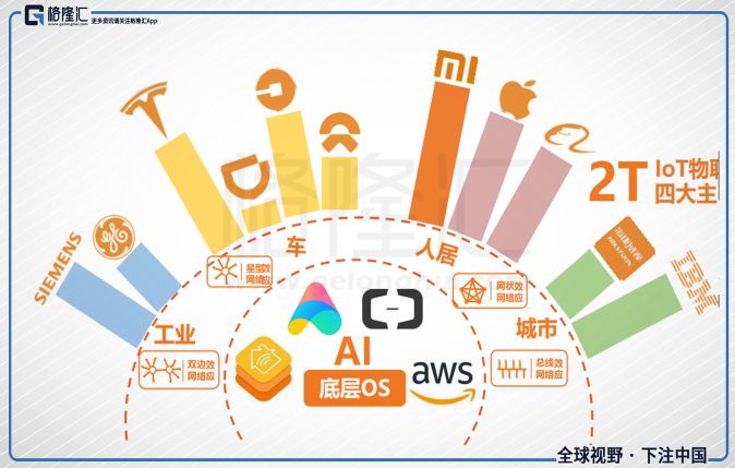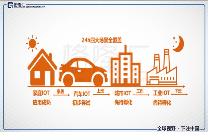 我们将2T的物联网按场景来分类,主要分为:家庭IoT、汽车IoT、城市IoT、工业IoT四大应用场景。