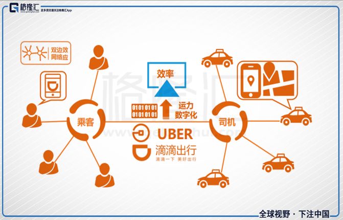 目前我们认为滴滴和UBER所做的是第一步,也就是将运力数字化,形成数字化的运力网络,产生效率提升。滴滴和UBER通过将乘客与司机的相关信息数字化,把核心应用和各个利益相关者结合起来,通过算法完成乘客与司机的快速匹配,提高出行效率,形成了较强的双边网络效应。