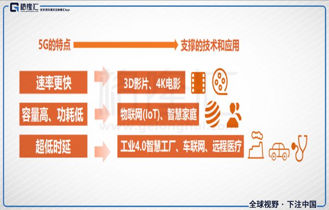 5G呈现出低时延、高可靠、低功耗的特点。速率方面:从4G的100Mbps为单位,5G可高达10Gps,比4G快达100倍,轻松看3D影片或4K电影。容量与能耗方面:为了物联网、智慧家庭等应用,5G网络将能容纳更多设备连接、同时维持低功耗的续航能力;低时延方面:工业4.0智慧工厂、车联网、远程医疗等应用,都必须超低时延。