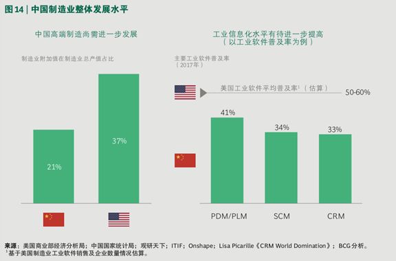 制造业的信息化基础还有待提高,主要工业软件的普及率需要进一步加强。