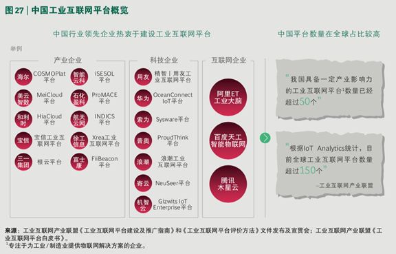 目前,中国的工业互联网平台的数量在全球范围内处于领先地位。根据 IoT Analytics 统计,全球工业互联网平台数量大约 150 个,而中国具备一定产业影响力的工业互联网平台就已超过 50 个。