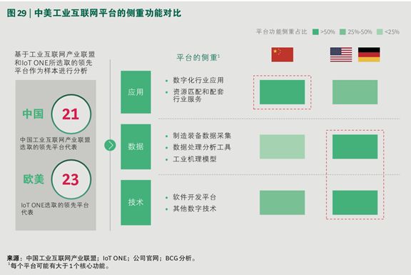 与欧美的工业互联网平台相比,中国的工业互联网平台普遍更侧重于应用领域,包括数字化行业应用、资源匹配和配套行业服务等。