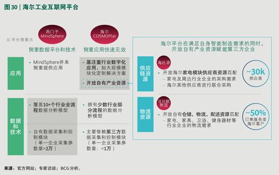 比如,海尔基于自身的产业数字化能力构建工业互联网平台。与西门子工业互联网平台相比,海尔工业平台更侧重应用领域,尤其是其开放自由产业资源。