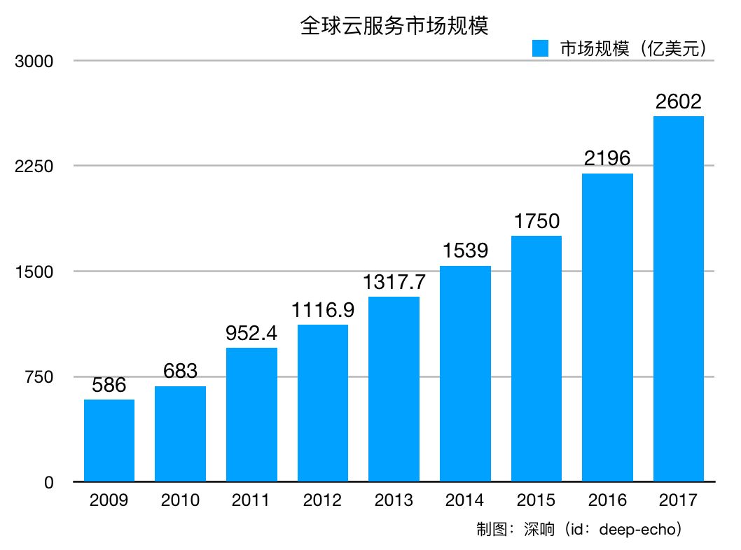 根据Gartner发布的报告显示,全球云计算服务市场规模自2009年以来一直呈现快速增长的趋势,2017年全球云服务市场规模高达2602亿美元,同比增长18.5%,是2009年市场规模的4.4倍。