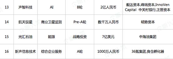 另外,「光汇石油」、「声智科技」、「乐才科技」、「驭光科技」和「佰才邦」都获得了上亿元融资。