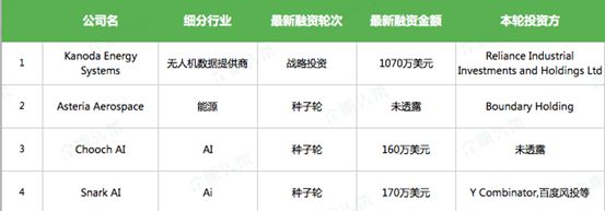 本周收录的国外企服领域投资较少,总共有四家,分布在AI、能源和无人机大数据服务三个细分领域。以下是本周国外企服行业融资总表: