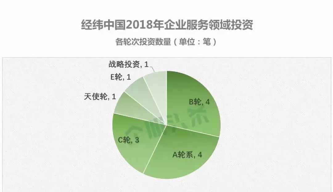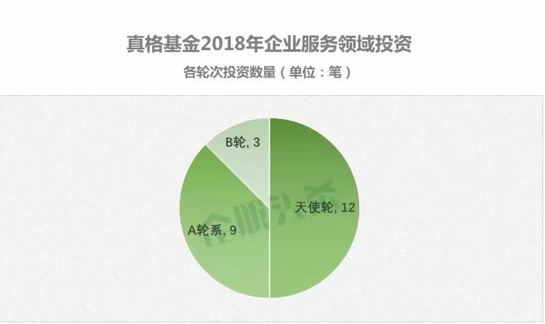 从今年在企业服务领域的投资来看,真格还是以前期项目投资为主,只投了天使轮、A轮系和B轮。相比后期项目,进入的资金门槛要低很多,所以能够投资较多的项目,但总体投资金额相对而言并不多。