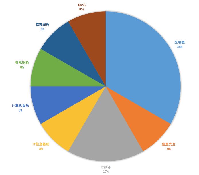 上周国内企服领域共发生12起融资,主要发生在8个领域,包括区块链、信息安全、云服务、IT信息基础、计算机视觉、智能财税、数据服务、SaaS。其中区块链领域有4笔融资,云服务领域有2笔融资,其他领域分别都有1笔融资。