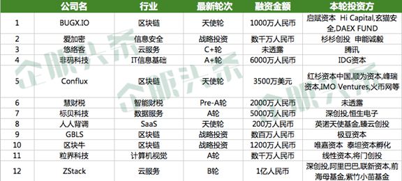 此外,在区块链领域上周有四家公司获得了资本助力。他们分别是:BUGX.IO、Conflux、GBLS和区块牛。