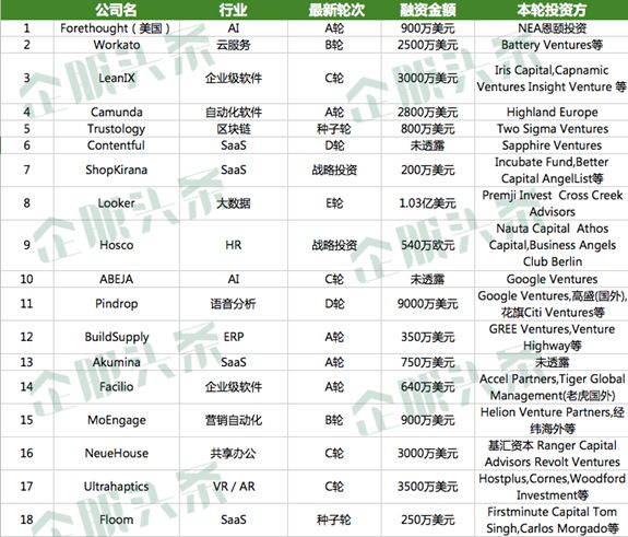 以下为国外企服领域融资汇总:
