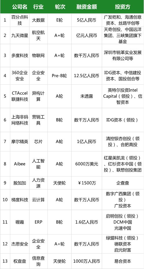 以下为国内企服领域融资汇总表: