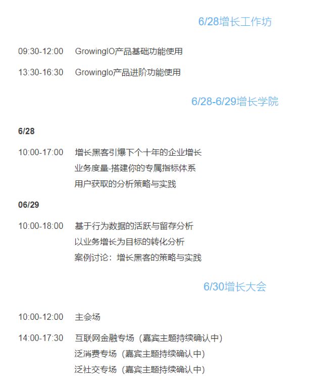 培训:前段时间的GrowingIO增长大会,可谓是风生水起,各个渠道都在推他们的大会。门票是从680~7800不等。虽然我没有参加,但是我们来看下大会的演讲内容。有没有发现一个问题。和房地产的明源云内容结构几乎类似。总结了说,培训内容=运营(管理)思路+产品操作