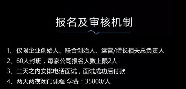 认证:如果你觉得这个大会并没什么,那么我们再来看看最近的一个“增长认证”课程。重点请看价格:35800元/人。为什么这么贵?别的噱头我们不看,请直接看第1条。还记得我们之前提过的B端用户的审批链吗?购买决策需要老大拍板。所以,你觉得这个费用适合一线员工参加吗?通过培训再一次完成了精准线索的筛选。