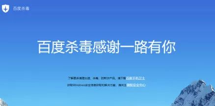 百度杀毒软件官网首页显示“百度杀毒感谢一路有你”字样,并显示“了解更多清理加速、杀毒、防欺诈产品,请下载百度手机卫士”及“获取Windows安全信息获取和解决方案,请关注微软安全中心”等文字,至此,诞生于2013年4月的百度杀毒软件已不再提供介绍和下载。