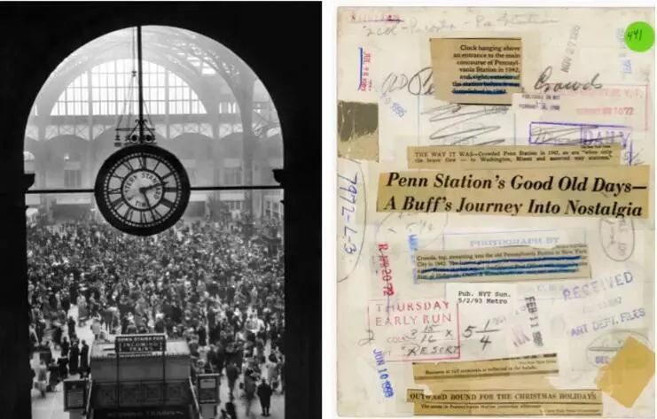 图:《纽约时报》拍摄的老照片,展示了1942年的宾夕法尼亚车站,背面的剪报摘自报纸的标题