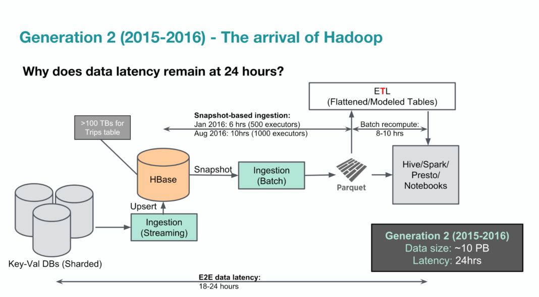 Hadoop 中更快的数据: Uber 的业务是实时运营的,所以我们的服务需要访问尽可能新鲜的数据。因此,在很多实际运营场景中,24 小时的数据延迟太慢了,这些实际场景对更快的数据传输存在巨大需求。我们的第二代大数据平台所采用的基于快照的摄取方法效率低下,导致我们不能以较低的延迟摄取数据。为了加快数据交付速度,我们不得不重新设计管道,以便只进行更新数据和新数据的增量摄取。