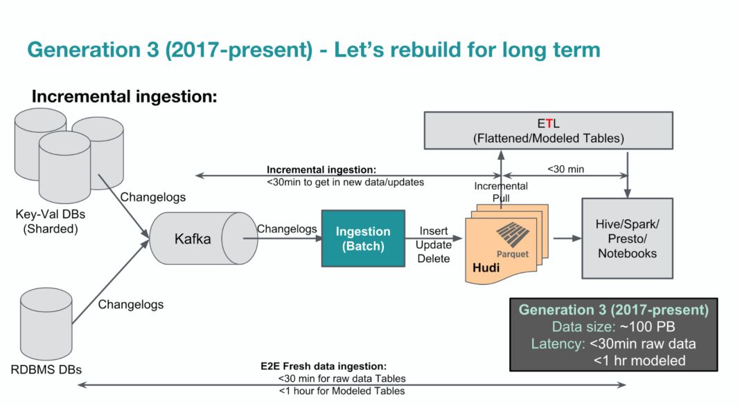 我们的目标是将 Hadoop 中的原始数据延迟减少到五分钟,将建模表的数据延迟减少到十分钟。这将使得更多用例从流式处理转向使用 Hudi 增量数据摄取的更有效的小批量处理。