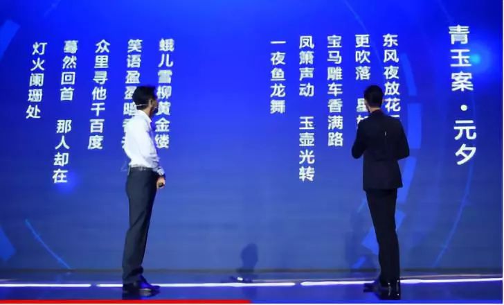 当时百度大脑现场根据张国荣国语声音片段,合成了一段来自天堂的告白;百度金融形象大使胡歌站台念完宋词《青玉案·元夕》的上阕之后,机器自动合成了一段音线相似的下阕念白。