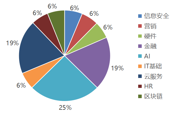 本周国内企服领域共发生16起融资,据企服行业头条(微信ID:wwwqifu)粗略估计,融资金额近25亿元人民币。上述融资主要发生在9个领域,其中AI、云服务及金融领域融资较多,AI领域4起,云服务及金融领域均为3起,前者占25%,后两者各占19%。