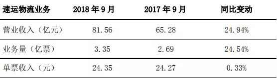 顺丰控股:9月物流业务营收入81.56亿元,同比增长25%