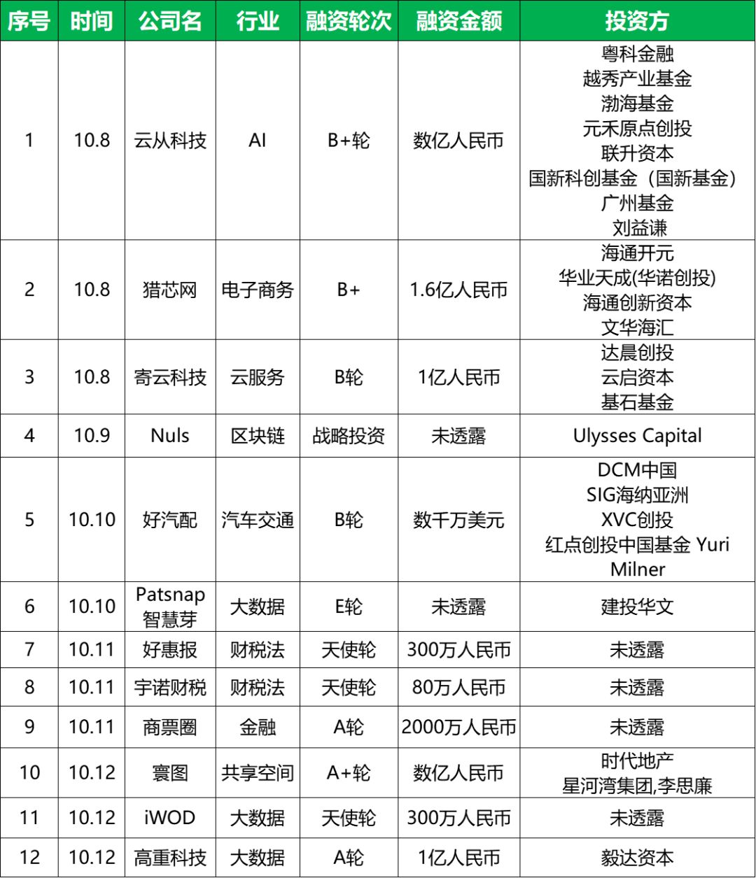 本周企服领域获得融资的企业中,云从科技、猎芯网、寄云科技、好汽配、寰图、高重科技等多家企业都获得了过亿元的融资额。